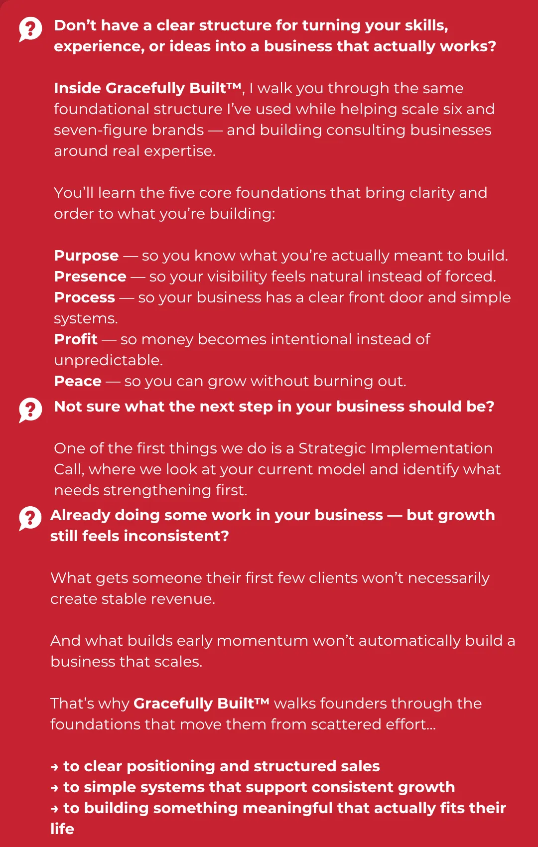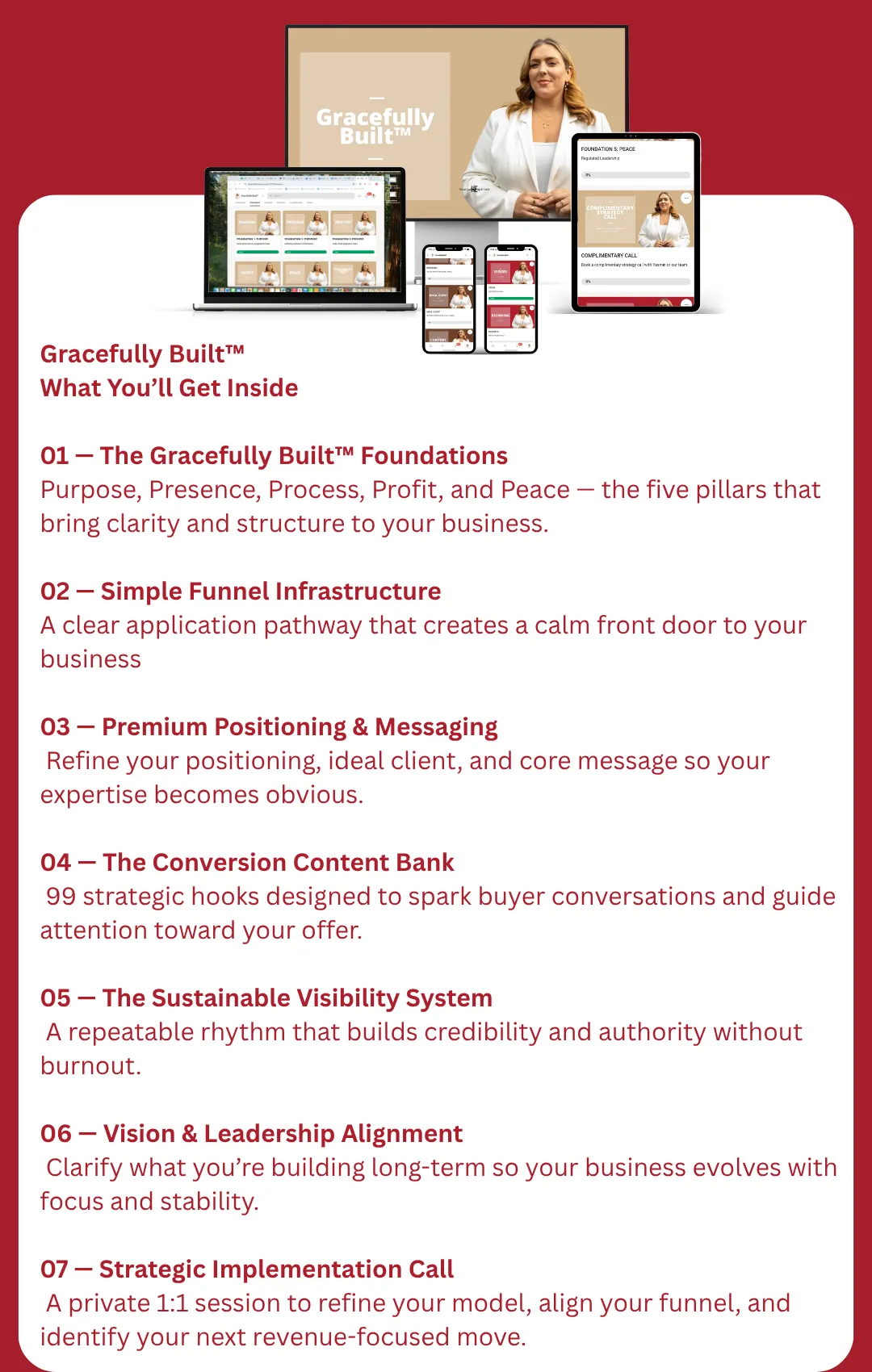 If you feel like you’re meant to build something — but need the structure to make it real — Gracefully Built™ was created for you.